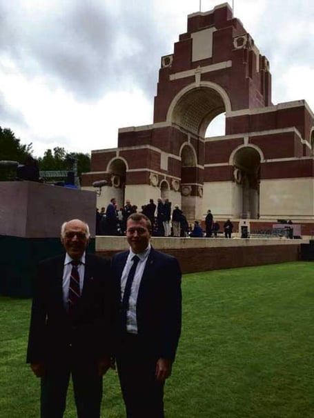 RALPH Chapman of Holsworthy with his grandson Nicholas Shepherd, who now lives in Exeter, were among the thousands of people, including members of the Royal Family, David Cameron and President Hollande of France, who attended a ceremony in France at the Thiepval Memorial on July 1 to mark the centenary of the Battle of the Somme, writes Christine Williams.