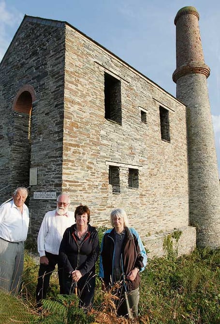 Outside the last engine house in North Cornwall, are three members of the original Prince of Wales Engine House Society — David Cook, Alan Sargeant, Mavis Lugg and Sally Holden. Sally’s father and mother donated some of the slates that were used to repair the building when it was restored. Picture: David Flower