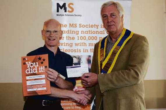 DURING the Camelford Rotary Club’s lunch on Tuesday, July 12, MS Society’s district fundraiser Andy Jarrett received a donation of £1,000 from the club’s new president David Hodge.