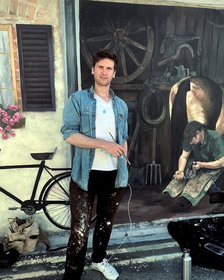 Artist Manny Pearce was commissioned by the town council to recreate ‘The Farrier’s Shop’ on the corner of Church Street and Tanyard Lane. The original art work by Peter Pascoe had become badly weathered, and a grant from Cornwall Council’s Welcome Back Fund was used to support the project. A time-lapse film on Manny’s Facebook page gives a look at the artist at work!