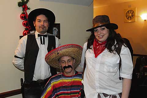 FANCY DRESS: In their fancy dress outfits on New Year’s Eve at Holsworthy Social Club, from left, are Rob Dobb, Mark Barlow and Laura Barlow.