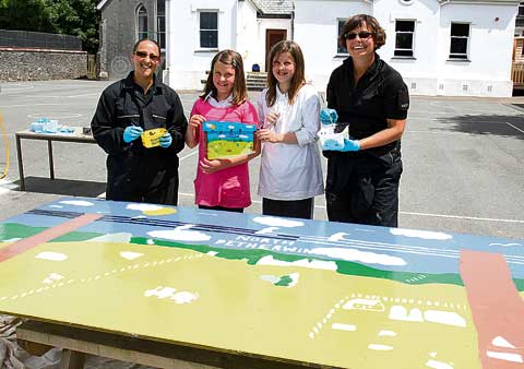 WPC Nicky Lawson, Neighbourhood Beat Manager Launceston Rural and PCSO Sharon Chinn spent a couple of days working with North Petherwin School Children to place the winning design onto a board ready to go into the bus shelter.
