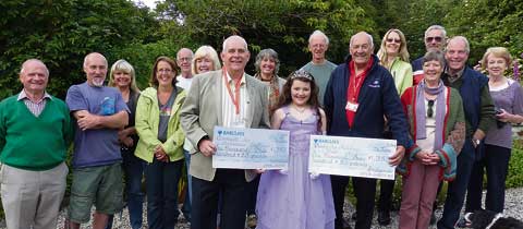PICTURED are some of the gardeners with Bridgerule carnival queen Katie Hallett, Paul Ford, representing Cornwall Air Ambulance and Dennis Bater, Devon Air Ambulance. Picture: Dawn Bewes