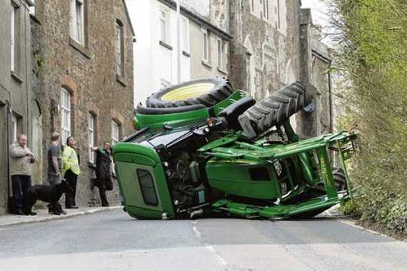 TRAFFIC was held up for some time along Holsworthy’s Chapel Street on Monday, after a tractor fell on its side, blocking the road.
