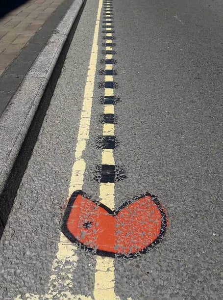 IT’S not every day that a passer by would glance over to see Pac-Man munching his way through the yellow lines of the road.