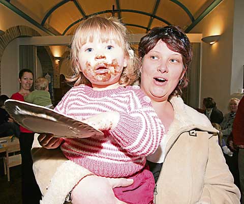 Pictured enjoying a chocolate pancake is Morgan Rickard, watched by mum Vanessa.