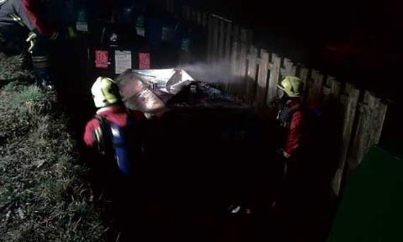 FIREFIGHTERS from Delabole went to Camelford last week to tackle a fire in a recycling waste paper bank.