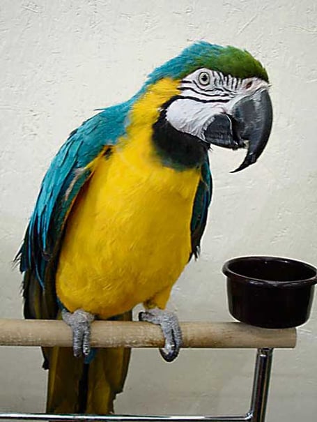 The second stolen parrot, a Yellow Crowned Amazon, approximately 14 inches in height, is called Georgie and can sing 'Happy Birthday'.