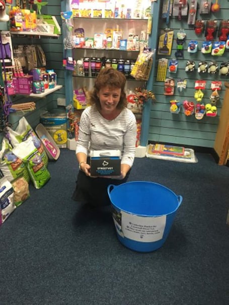 Sally keeps a donation bucket outside her shop, Freckles Pet Goodies.
