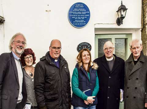 A GROUP of some 25 people, local and visitors, gathered together to witness the unveiling of a plaque in memory of the Reverend Samuel Pollard in Camelford recently.