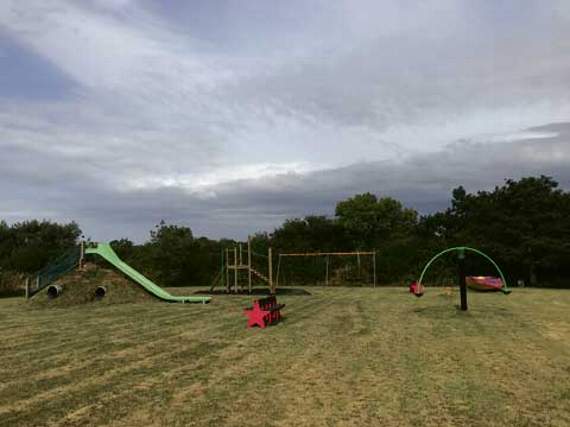 The committee then installed the embankment slide and tunnels onto the mound that was built from the surplus soil in the entrance improvments. The slide was funded by the Hardings and their wind turbine fund at Norton Barton. The entrance was funded by the East Langford Solar Farm, which is distributed by the Cornwall Community Foundation.