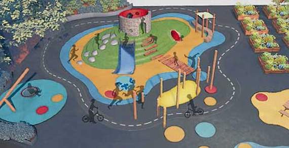 The proposals drawn up by the architects include a play tunnel, play ‘Castle’, climbing rocks and a slide, picnic seating area and sensory and wildlife planting areas.