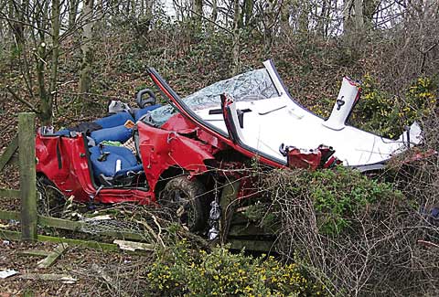 A red Fiat Punto left the road on the nearside and smashed through wooden fencing. The fencing came through the windscreen of the vehicle causing injuries to the two female occupants.