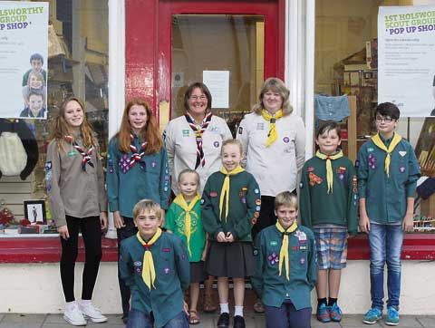AT THE pop-up shop are members of 1st Holsworthy Scout Group: Abi Stone, Abi Johnson, Kirsty Stone, Pauline Masters, Callum Yeo, Adam Yeo, Pip Horn, Taylor Allcorn, Caitlin Allcorn and William Stone. Picture: Dawn Bewes