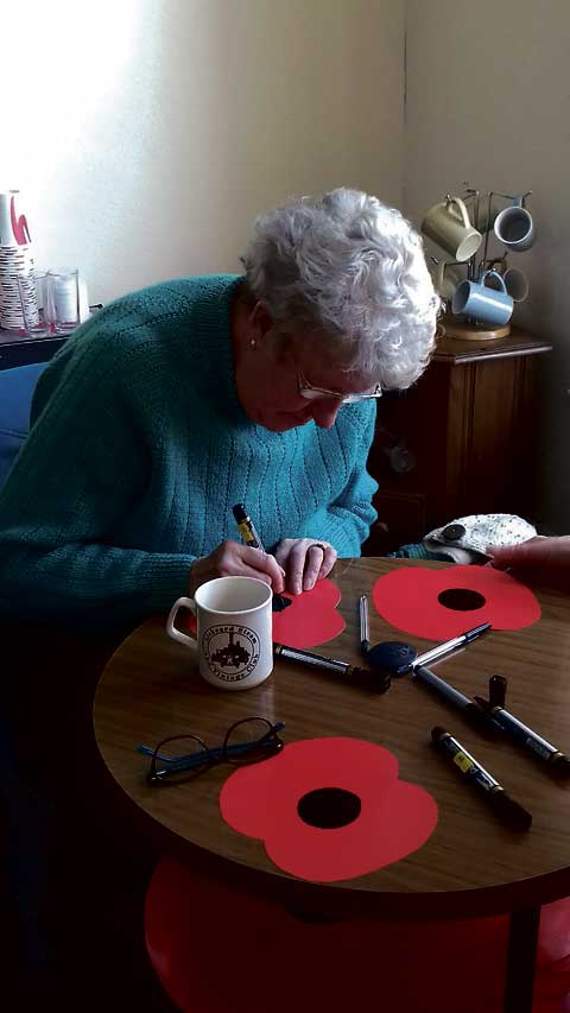 The Women’s Section started cutting poppies out of vinyl in January — big, medium and small — which have been tied onto a backing to create an effective display.