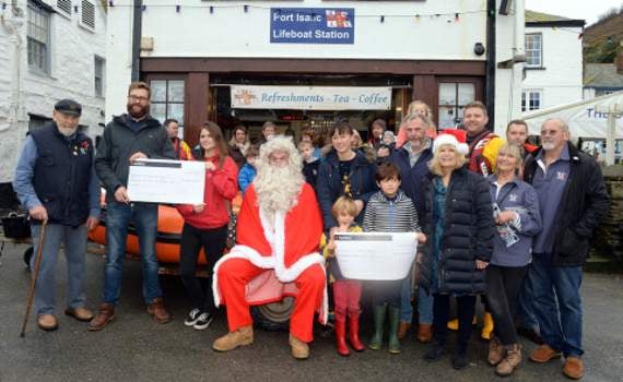 The presentation was made at Port Isaac RNLI Christmas event, staged annually within the Station’s Boat House, was further enhanced this year by the attendance of representatives of the confectionary company, Buttermilk Confections and Cornwall Air Ambulance as well as Port Isaac RNLI’s very own Father Christmas.
