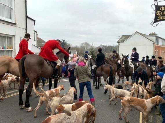 The support for trail hunting was clearly as strong as ever as people spilled off the pavements to catch sight of more than 20 beautifully turned out horses and the very friendly hounds.