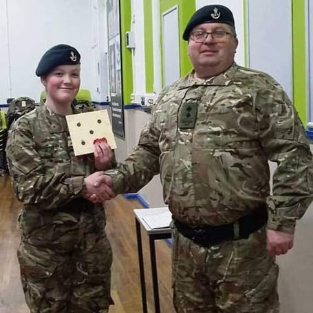 Lt Harvey said: “We are able to run an additional training evening which at present is concentrating on air rifle marksmanship training and shooting and our Duke of Edinburgh’s Award Physical Acheivement section. Cadet Girdler has done very well surpassing the required pass score by 15 points.”