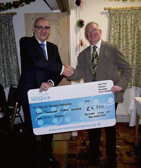 The cheque was presented to Kevin Underwood, chairman of the Trustees of North Devon Hospice, by Ray Hockin, at a Rotary Club meeting — he made the Longhouse Appeal his charity of choice for his presidential year 2014-15.