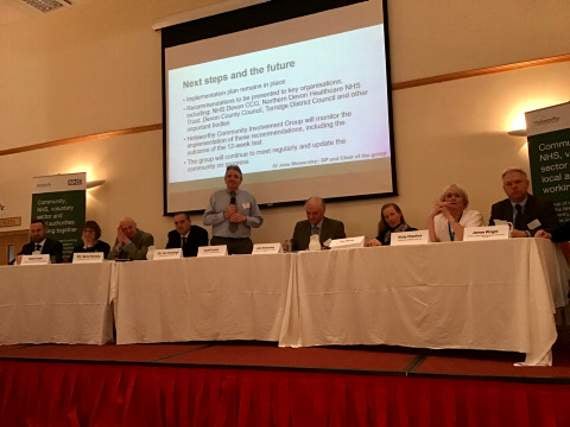 Their ‘pioneering’ proposals were set out in a document entitled ‘Healthier and Happier Holsworthy’ and were enlarged on by a panel of nine, consisting of local councillors, representatives of the NHS and local residents. Before and during the meetings community volunteer groups were manning stalls demonstrating what services and support are already available to people in the Holsworthy area.