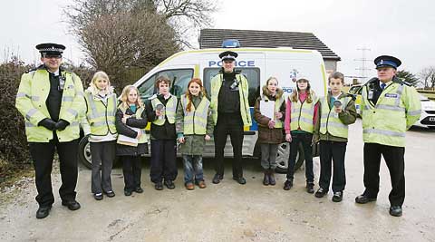 PUPILS from St Teath Primary School joined officers from Camelford Police Station to help check the speeds of motorists as they entered the village last week.