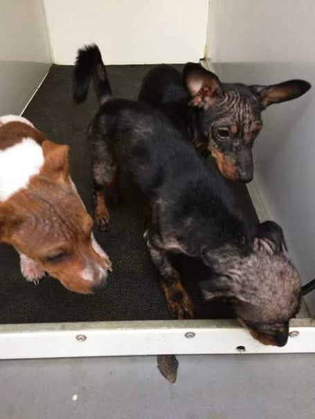 Collected on October 27, the puppies were in poor condition and suffering with a skin condition, currently believed to be mange. The dogs are being cared for and undergoing veterinary treatment.