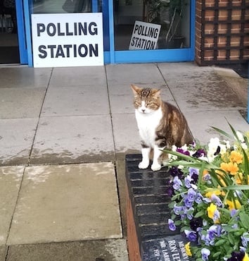 While a twitter trend featured dogs at polling stations, one Ross Gazette reader spotted this cat at the polling station at the Larruperz Centre.