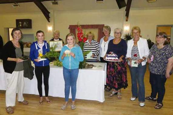 First prize winners at this year’s show, and pictured, included: Judy Butler — ‘Three Courgettes’; Beth Gifford — ‘Cup and Saucer Floral Arrangement’; Anita Burnard — ‘Picture’; Maisie Gifford — ‘Vegetable Animal’; Carole Beaven — ‘Three Blooms’; Irene Sharp — ‘Dartmoor’; Ann Parnell — ‘Red, White and Blue Queens 90th Birthday’; Sandra Burnard — ‘One Rose in a Vase’; Marie Heard — ‘Corsage’.