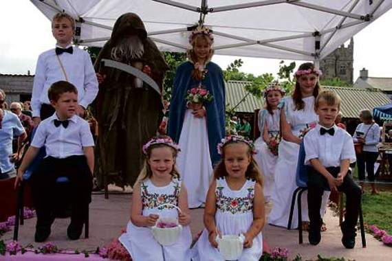 According to ancient custom, the queen is crowned by ‘Father Time’ as a representative of St Marwenne, the Celtic saint who brought Christianity to the village in the sixth century.