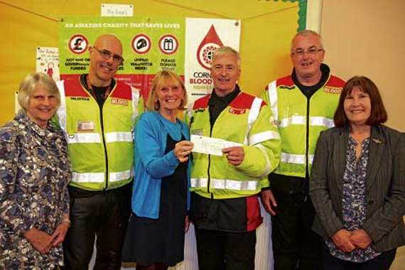 FOUR members of Cornwall Blood Bikes came to the October meeting of Flowerpatch Quilters in the Central Methodist Hall, Launceston, to receive a cheque for £3,000.