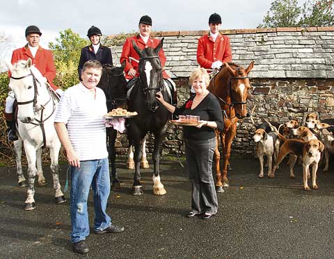 The meet was kindly hosted by licensees Yvonne and Chris Pearce, who provided the traditional stirrup cup and some very tasty snacks. Scarlet coated huntsman Simon Cann with the two whips Steve Jeffery and Peter Gliddon provided a colourful backdrop for this important event in the hunt's calendar.