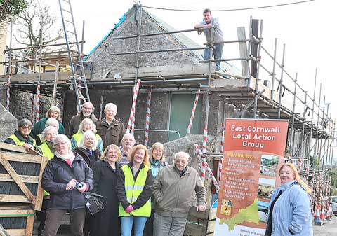 The work is being made possible by donations from various sources. Representatives from the donors celebrated the occasion, including Linda Emmett from East Cornwall Local Action Group (ECLAG), Wendy Reading from SITA Cornwall Trust, Denis Lusby from the parish council and Dennis Champion, chair of the build committee.