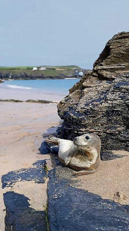 MEMBERS of the beach cleaning group Widemouth Task Force were delighted to find out that a young seal pup rescued locally in October last year has since been spotted, safe and well.