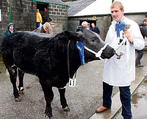 A Limousin steer, 'Sticky Wicket,' shown by Michael Kirby, of Holsworthy, was reserve champion at the Liskeard Prime Stock Show on Thursday. Cattle judge Alan Lutey, from Summercourt, congratulated the farmers who had entered livestock for "a superb show of cattle of which you should be proud." Heavy rain forced the show judging to take place in the confines of the indoor sales ring for only the second time in the show's 92-year history.