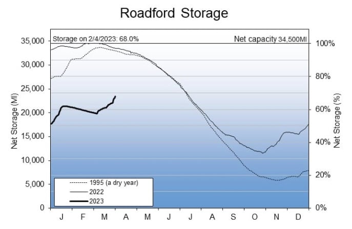 “Overall reservoir resources are stable at 73 per cent for the region, but levels are much lower in Cornwall which was particularly affected by record-high demand and dry weather in 2022.”