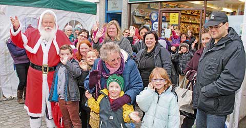 In conjunction with the Christmas market, 85 children lined up to greet Santa. Led by Launceston Town Band, and kindly transported by Hawkins Motors, Santa arrived in the square at 2pm — much to the cheers and delight of the waiting youngsters.