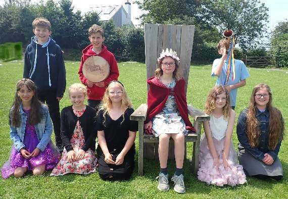 Sarah Short, who works at Marhamchurch Primary School (HLTA) and also helps with the organisation of Marhamchurch Revel, explained: “This included the voting in of the Revel Royalty and had their own revel celebration in school. The whole school was involved. Every child had the opportunity to vote for the queen, marshal and page. The Revel was discussed in classes, bunting and flags made. The school revel included a procession through the school grounds, the marshal blowing the revel bugle, all the children cheered, played musical instruments and waved their flags. For the ceremony Old Father Time’s speech was read out before the Revel Queen placed the crown on her head. The queen made a lovely speech to the children which was followed by another procession around the school field to the cheering crowd.