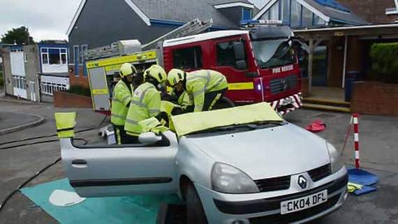 The day culminated with a demonstration by Devon and Somerset Fire and Rescue and PCSO Raquel Rowe. Students were talked through the procedures the emergency services follow once they receive a 999 call about a road traffic collision. The casualty, this year Kai Trivett, was eventually lifted from the vehicle, once it had been made safe and the roof had been cut off. The various steps were explained to students. The experience of being in the vehicle when this was all going on around him was a little scary for Kai.