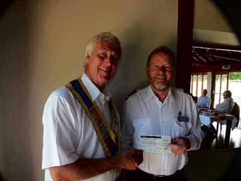 DAVID Hodge, the president of Camelford Rotary Club, presents John Davis with a cheque