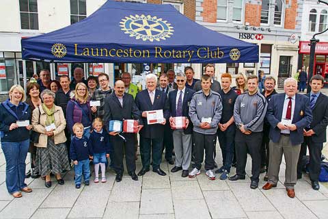 WHILE visiting the Launceston Rotary Community Shop on Thursday, April 25 President of Rotary International in Great Britain and Ireland (RIBI) John Minhinick helped present cheques and defibrillators to the town.