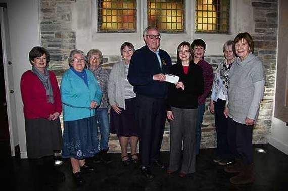 Past Rotary president Dennis Howson is pictured with the committee of FLIC and presenting the £1,000 cheque to FLIC treasurer Teresa Knight.