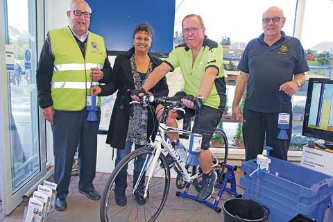 Chair of Launceston Rotary's International committee Barrie Boundy, Richard Ilsley and Paul Smith cycled to Land's End and back on a static bicycle in the Tesco foyer, last Thursday.