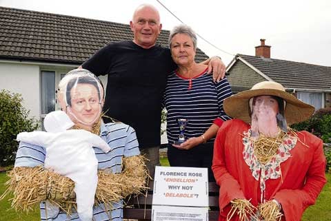 A SCARECROW and guy competition was recently held in the Delabole where 18 scarecrows graced many of the gardens around the village and were all of a very high standard this year. The scarecrows were judged by Mrs Anne Scott and Miss Suzannah Scott which proved a very hard task indeed. The overall competition winner taking first place was Bob and Ro Chapman of West Downs Road with their entry 'Why not Delabole?' In second place was the Copper family of Penhallow Park with 'Help! Where has the scaffolding gone?' and in third place was Mr and Mrs Ellis of High Street with 'Recyclatron the way for the future.'