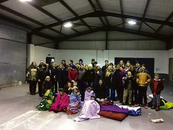 As ‘guards’ were patrolling the main entrance, the young people were ushered in secretly through a side door. With all the lights out and sheets covering the windows, the only light was torchlight. Sitting on the floor on coats and blankets, the group ate together in the dim light, with the food provided by Rachel Andrew and Dionne Bere.
