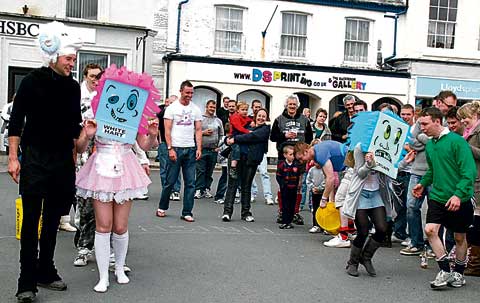 At 4pm both teams made their way to the Square for further events, including the masked race, the lorry pull, egg throwing and boat race.
