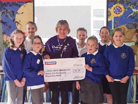ABOVE: Pupils from Shebbear Community School pictured with a cheque they raised in aid of NDDH’s Seamoor Unit