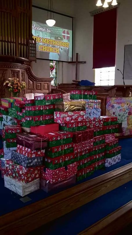 FROM here, there and everywhere, 220 Christmas shoeboxes were collected in the Bude Methodist Church.