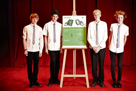 BUDEHAVEN School students Tom Fry, Jay Bevan, Ben Morrison and Archie Hedge-Evans, the students behind the ‘ShoreCast’ winning app