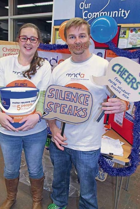 Andy Sleeman and Karen Lang raised £835 with a 12-hour silent collection at Tesco, Launceston, on Monday, December 14, and the following day a further £475 was raised at Karen’s coffee morning — a total of £1,310 for the Motor Neurone Disease Association in memory of Peter Sleeman.