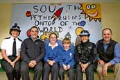 village will enjoy the hard work done by the children for many years to come. From the left are, WPC Nicky Lawson, Head Teacher Phil Wright, pupils Georgia Harvey, Nathan Rossiter, PCSO Sharon Chinn and parish and Cornwall councillor Phil Parsons.